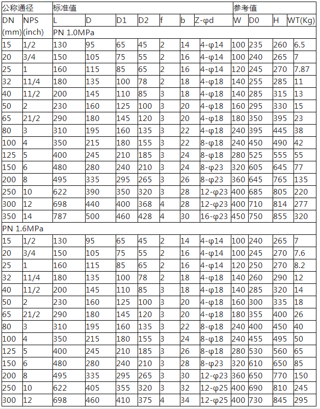 公稱通徑DN15~350(mm)