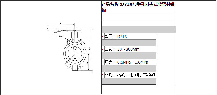 D71X/J手動對夾式軟密封蝶閥特點: