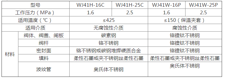 波紋管截止閥性能參數: