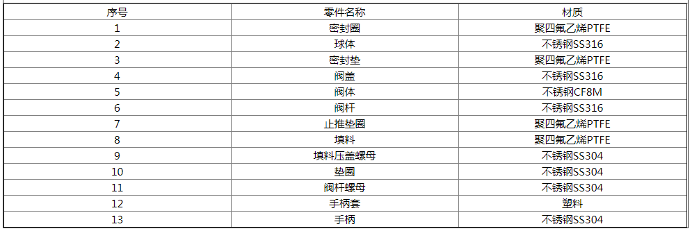 內螺紋一片式球閥主要零件材料: