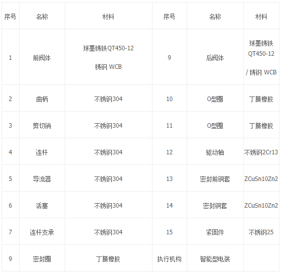 HS941X活塞式電動調流調壓閥產品零部件材質: